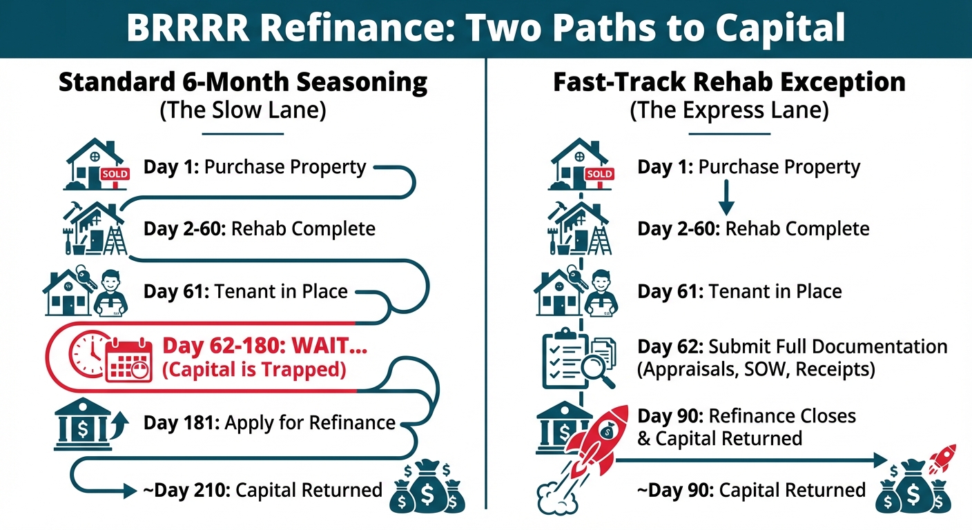 The Fast-Track BRRRR is entirely dependent on your ability to qualify for the Rehab Exception. If your documentation is sloppy or incomplete, the lender will deny the exception and force you to wait the full six months. This can cause a major liquidity crisis if you were counting on getting that capital back quickly to pay off high-interest debt or fund your next deal.