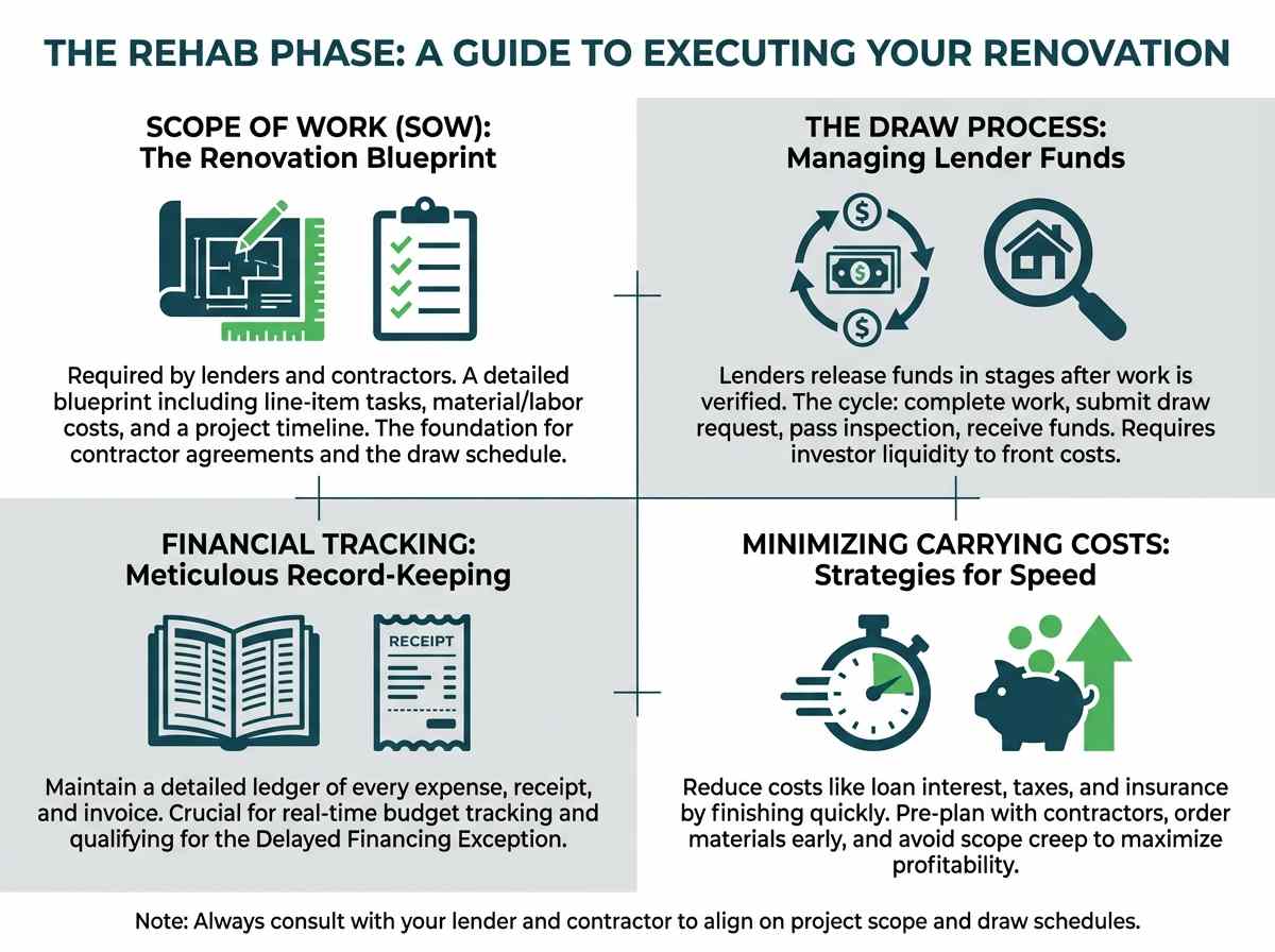 The rehab phase is where you manufacture equity. Efficient project management is key to staying on schedule and on budget, which directly impacts your profitability and your ability to refinance quickly.