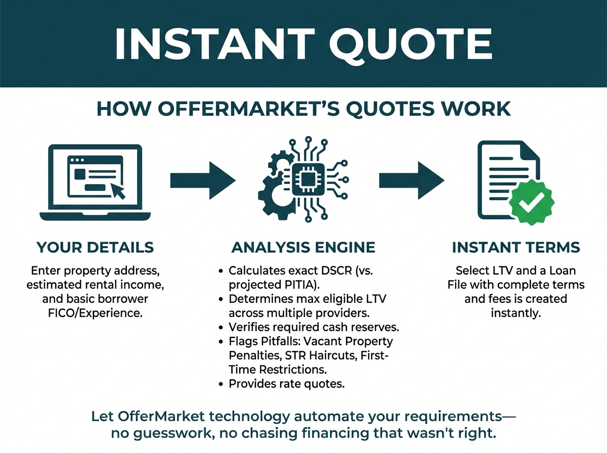 Get your instant quote now and let our technology handle the DSCR loan requirements automatically—no spreadsheets, no guesswork, no chasing financing that wasn't right for you in the first place.