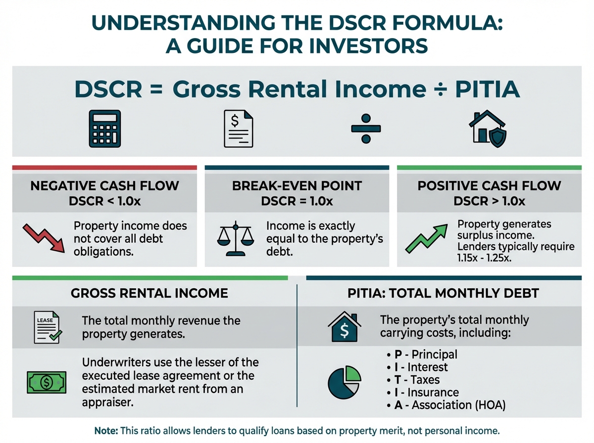 DSCR = Gross Rental Income ÷ PITIA