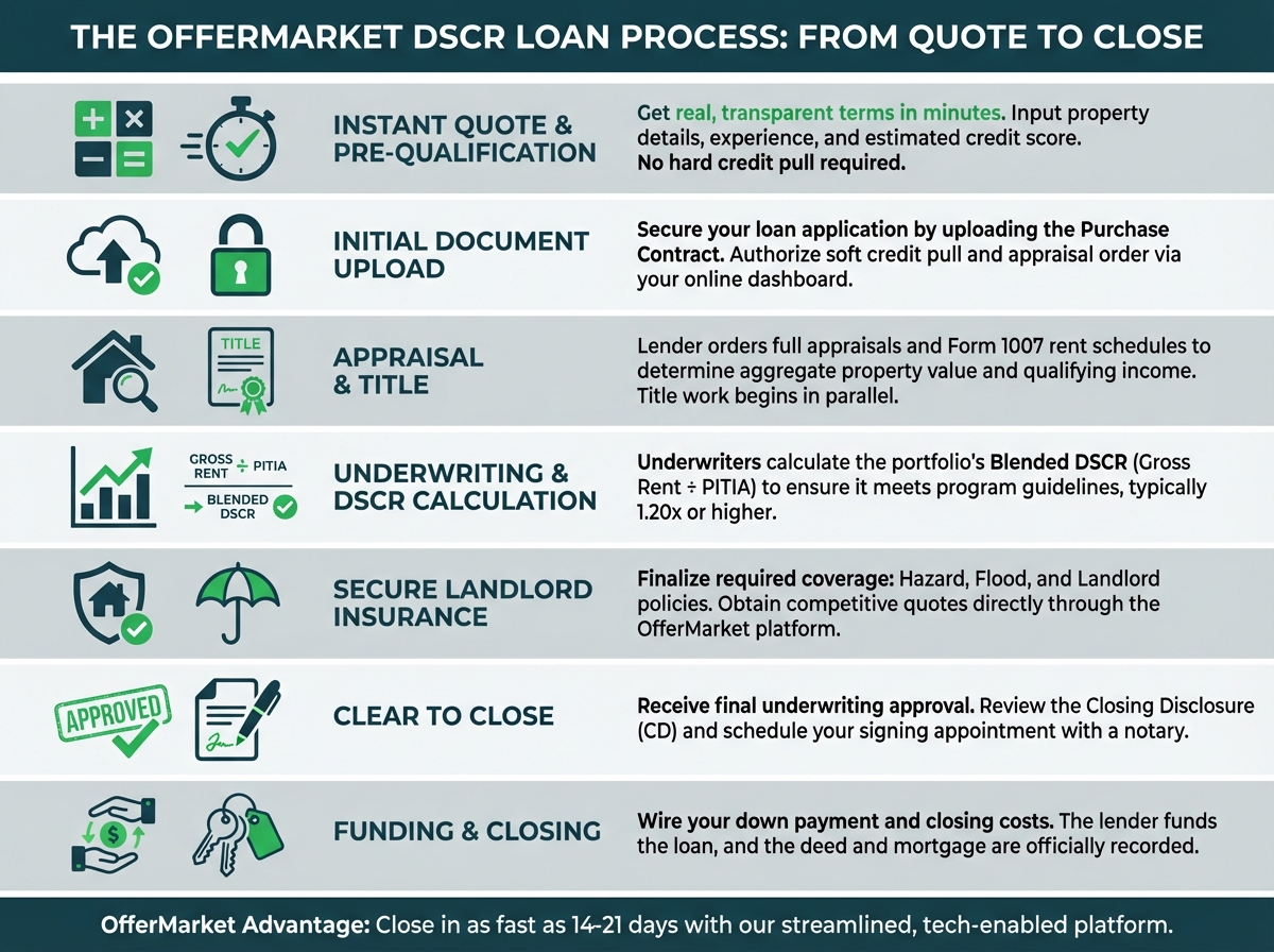 Securing a portfolio DSCR loan is a straightforward process, especially when working with a tech-enabled lender like OfferMarket. While there are more moving parts than a single-property loan, the steps are logical and designed to ensure a smooth transaction from initial inquiry to funding. Here’s a breakdown of what you can expect.