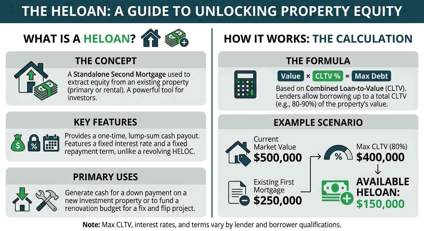A Home Equity Loan, or HELOAN, is not a direct flip loan itself, but rather a powerful tool for funding one. It's a closed-end second mortgage that allows an investor to extract equity from an existing property (either a primary residence or another rental) to generate cash for a down payment or renovation budget on a new project.