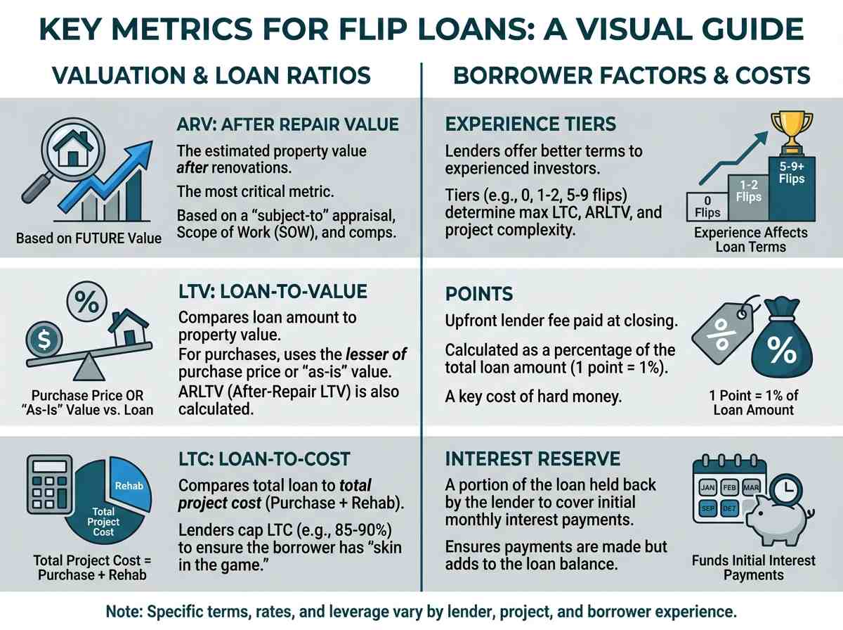 Get Your Quote →Navigating the world of flip loans requires understanding a specific set of terms and metrics. These are the numbers and concepts that lenders use to evaluate the risk and potential of your project.