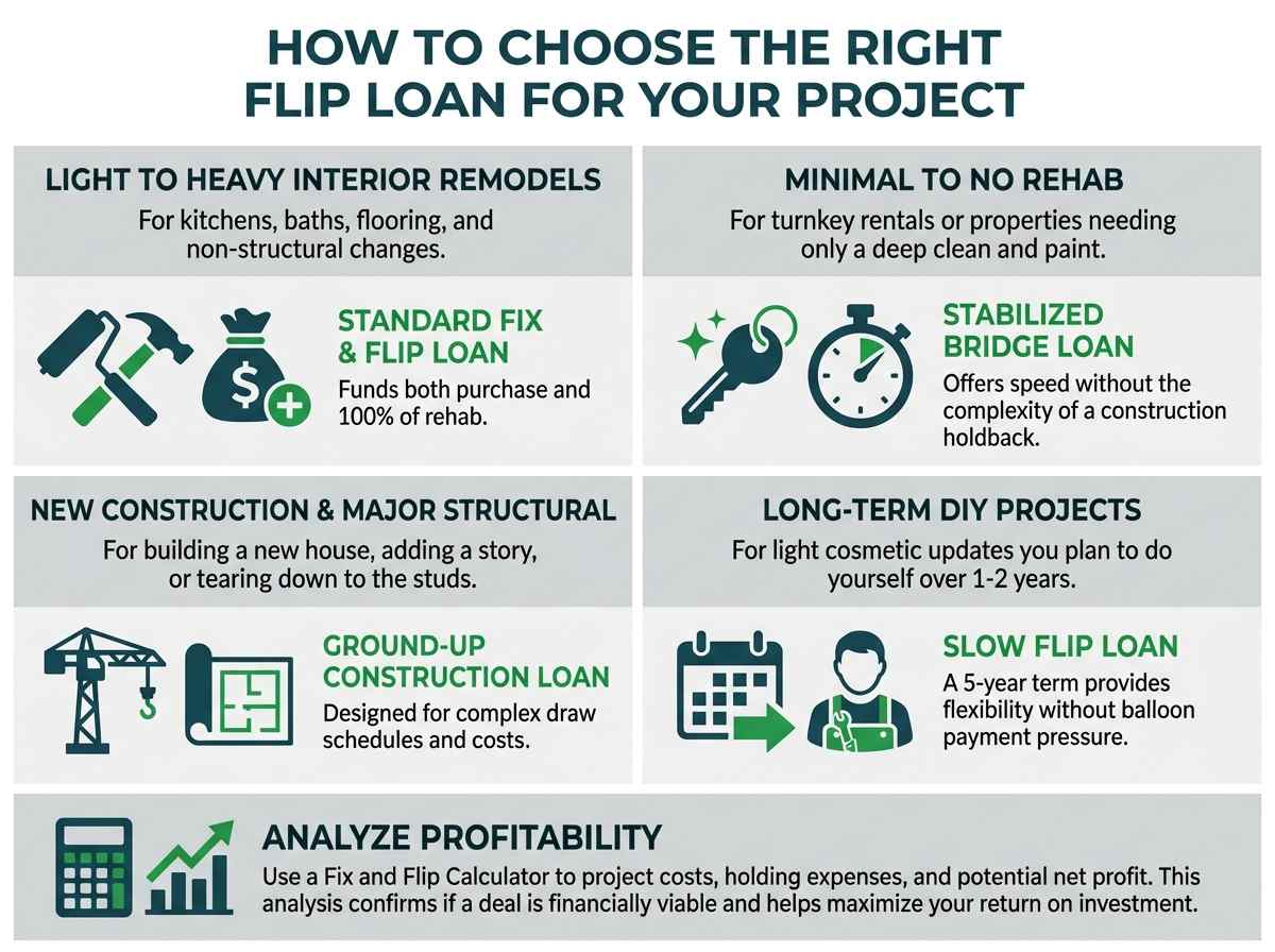 Selecting the correct financing is as critical as choosing the right property. Using the wrong loan product can erode profits, create unnecessary stress, and even jeopardize the project. Here’s a framework for making the right choice.