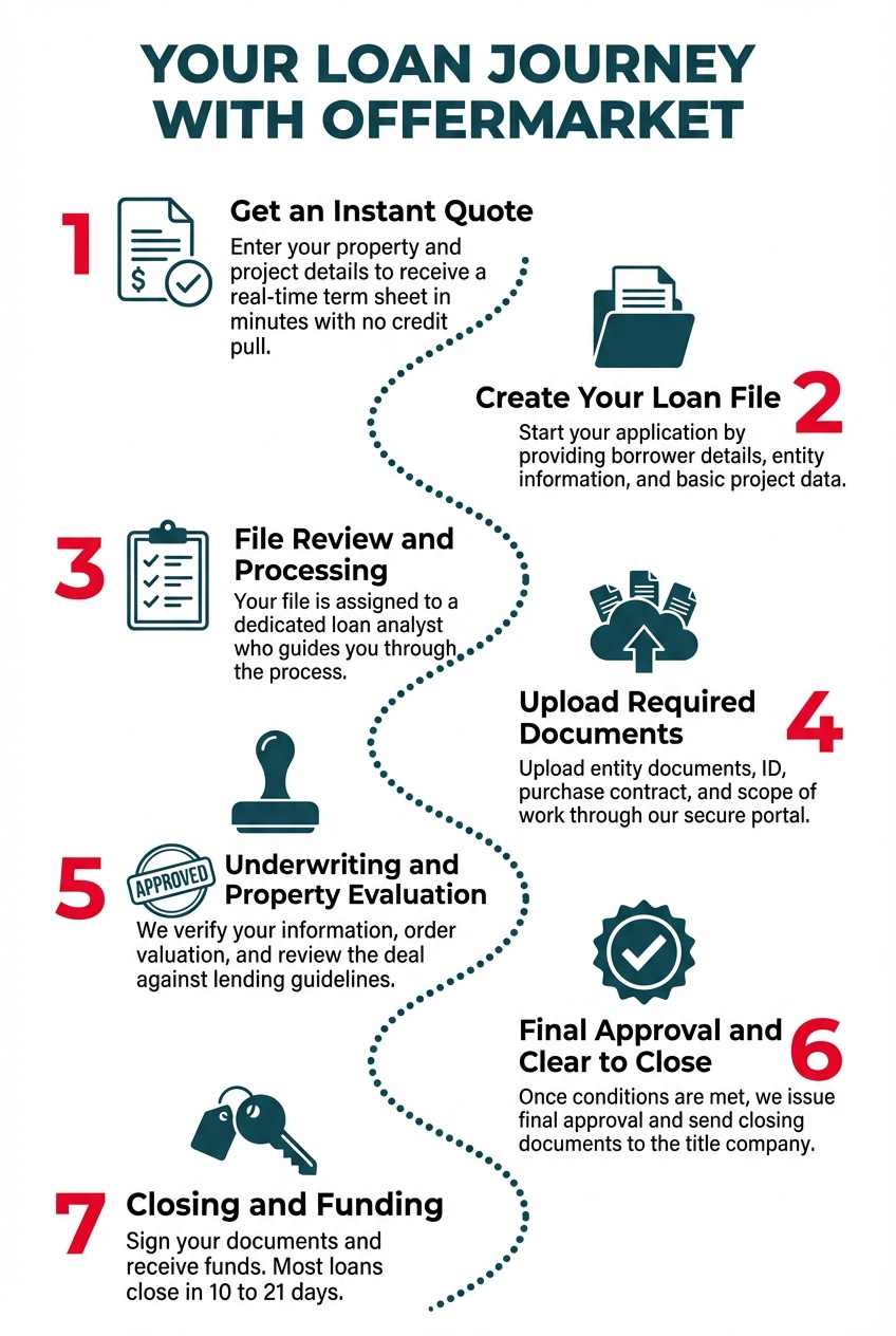Modern lenders like OfferMarket have streamlined the loan application process, leveraging technology to make it faster and more transparent. Here is a typical step-by-step journey from inquiry to closing.