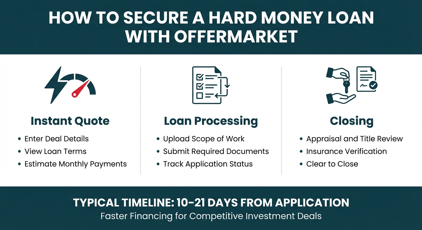 Ready to see what's possible for your next deal? Get an instant quote from OfferMarket and discover your personalized loan terms, interest rates, and estimated monthly payments in minutes. No lengthy applications, no waiting weeks for answers—just clear, competitive financing options tailored to your investment strategy.