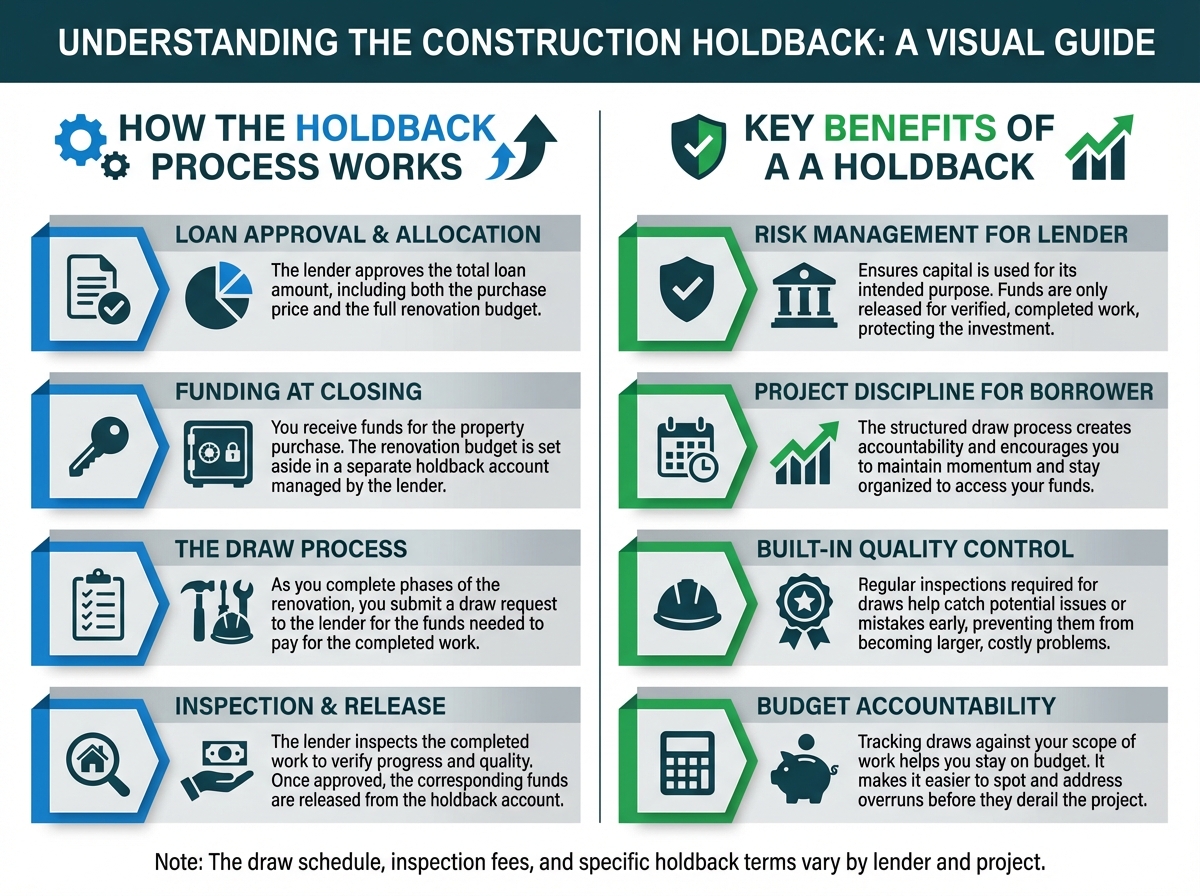 The construction draw process is the system by which you, as the investor, request and receive funds from your construction holdback as you complete renovation work. While specific requirements vary by lender, the fundamental process follows a consistent pattern.