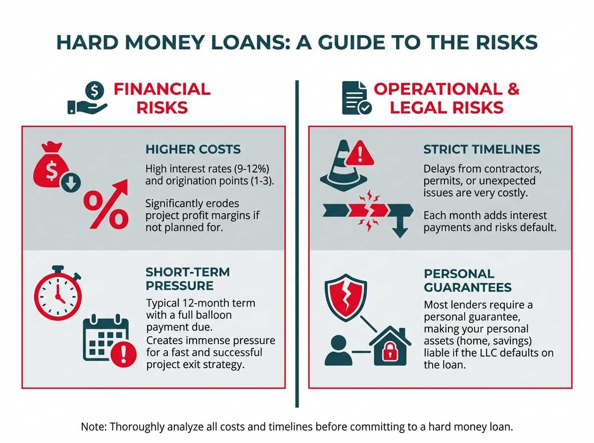The most obvious drawback is the cost. With interest rates between 9-12% and 1-3 origination points, hard money is significantly more expensive than a conventional 30-year mortgage. These costs must be carefully factored into your deal analysis. A project's profit margin must be substantial enough to absorb these higher financing costs and still provide a healthy return. Using a hard money loan on a deal with thin margins is a recipe for disaster.