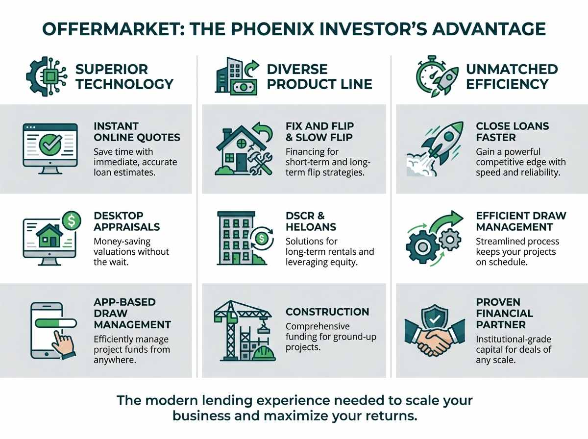 For Phoenix real estate investors who demand speed, flexibility, and a reliable financial partner, OfferMarket provides the modern lending experience needed to scale your business and maximize your returns.