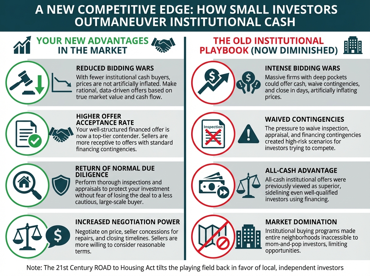 For over a decade, the greatest challenge for small investors has been competing with the seemingly limitless supply of institutional cash. The 21st Century ROAD to Housing Act fundamentally alters this dynamic, handing a significant competitive advantage back to you.