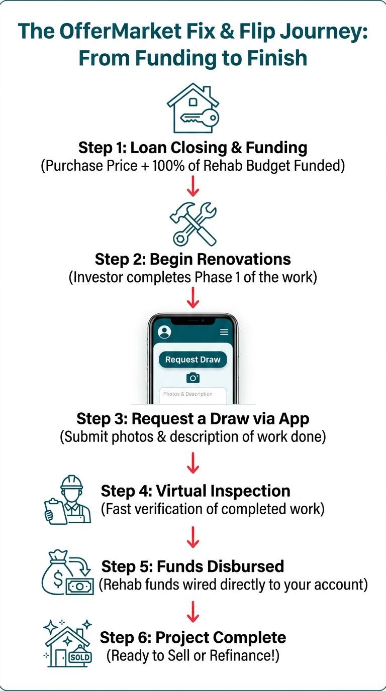 This seamless experience is powered by a robust, tech-enabled platform. From the moment you engage with OfferMarket, the difference is clear. You can get an instant, data-driven loan quote in minutes, not days. The platform leverages desktop appraisals to accelerate property valuation and features an intuitive app-based draw management system, allowing you to request and receive renovation funds directly from your phone. This technology isn't just for show; it's designed to remove friction and accelerate your project timeline.