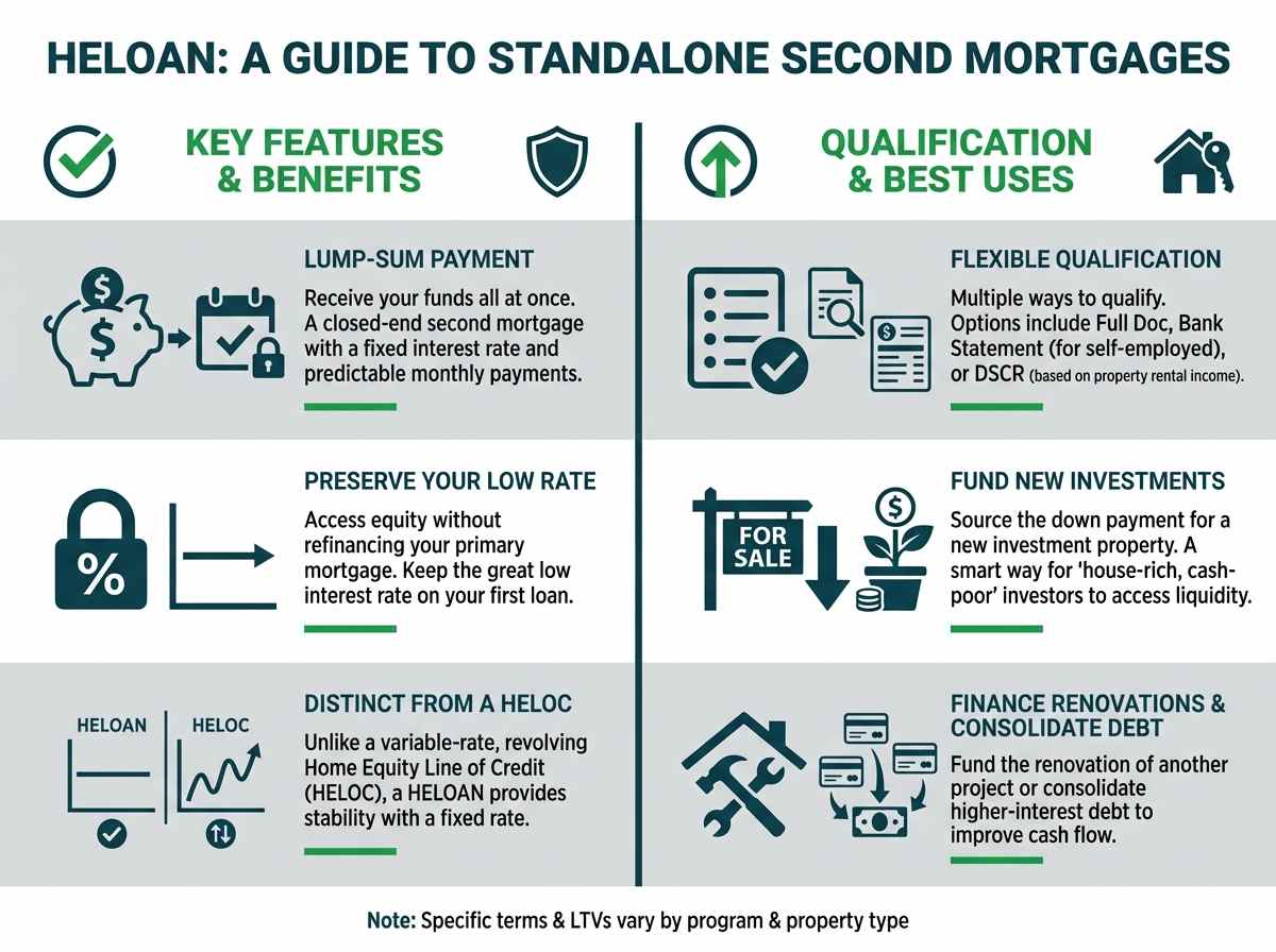 A Home Equity Loan, or HELOAN, is a powerful tool for unlocking the capital trapped in your existing properties. It's a closed-end second mortgage, meaning you receive a lump-sum payment and have a fixed interest rate and predictable monthly payments. This is distinct from a HELOC (Home Equity Line of Credit), which is a variable-rate revolving line of credit.