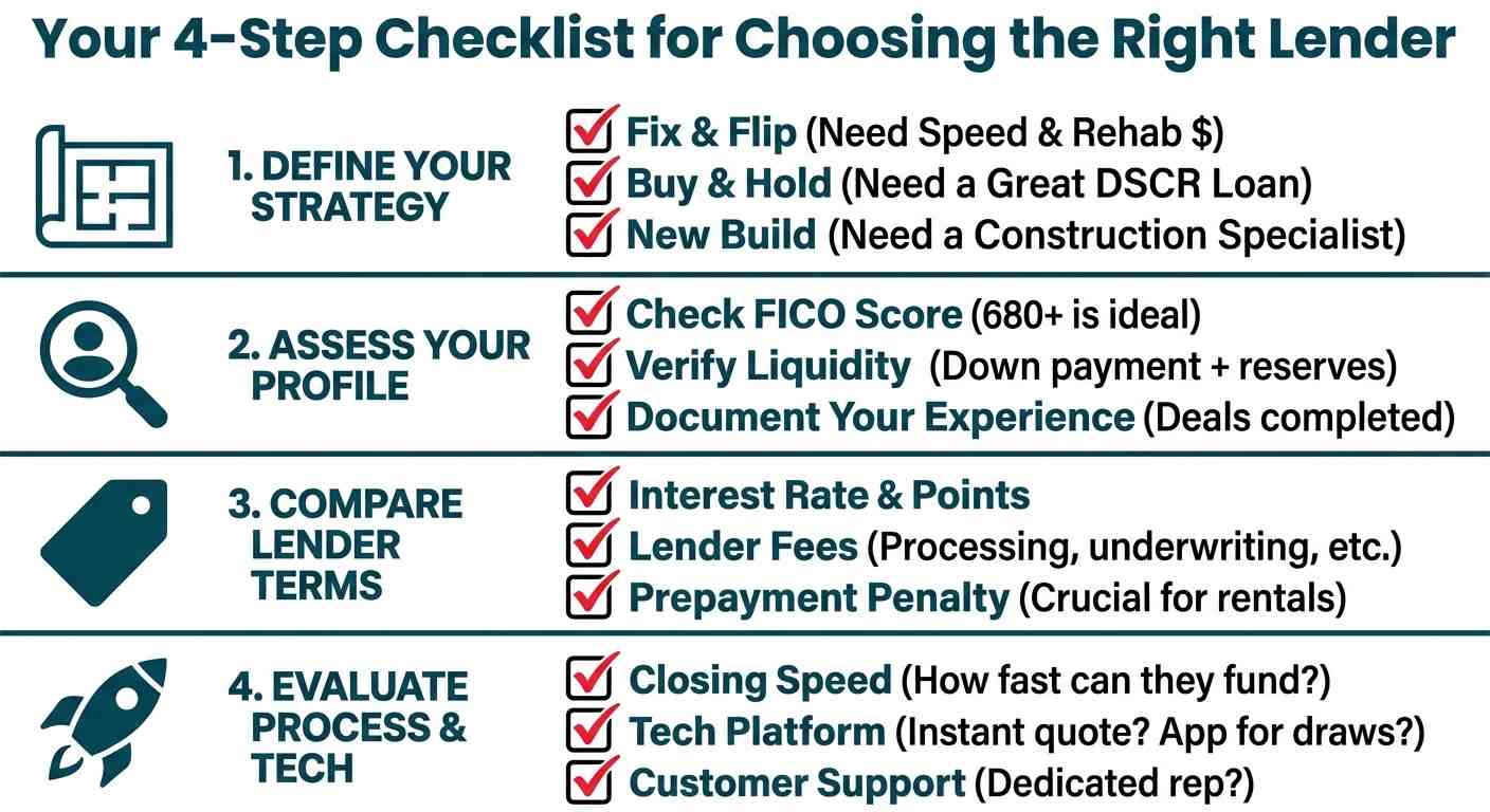 The first step is to have absolute clarity on your goal. The right lender for a quick flip is often the wrong lender for a 30-year rental.