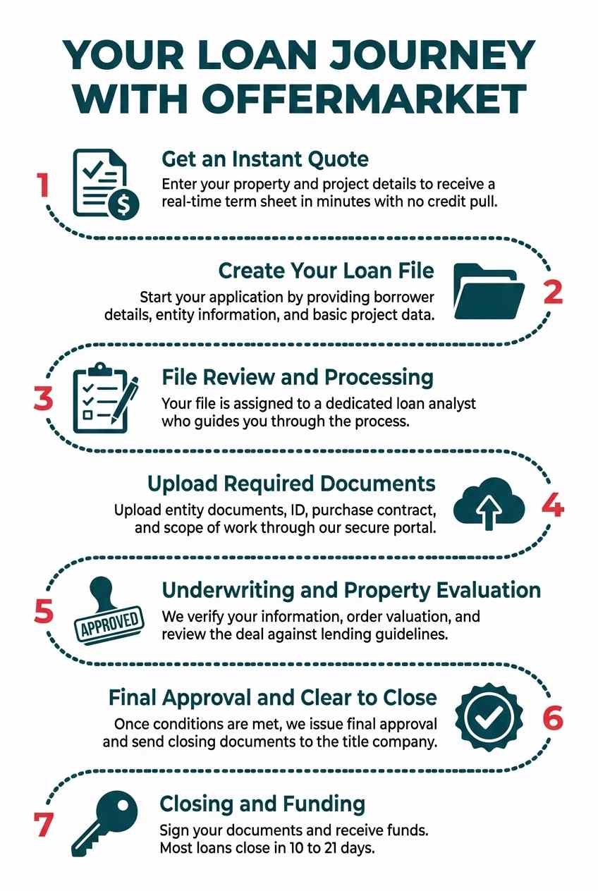 OfferMarket's strength lies in the breadth and depth of its loan products, each tailored to a specific investment strategy. This versatility ensures that as your investment goals evolve, your financing partner can evolve with you.