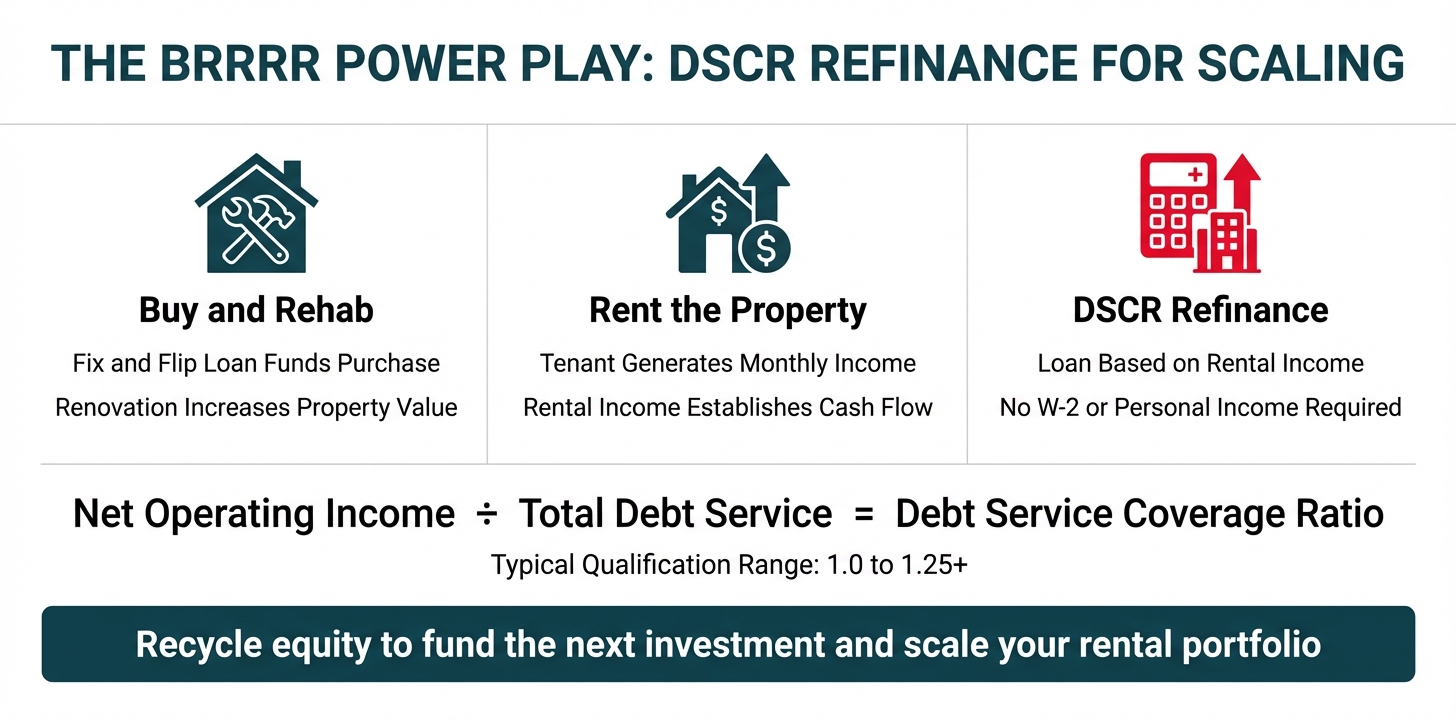 While many investors plan to sell their flipped properties immediately after renovation, sophisticated investors understand the power of having a secondary exit strategy: the BRRRR method (Buy, Rehab, Rent, Refinance, Repeat). This is where DSCR (Debt Service Coverage Ratio) refinance loans come into play.